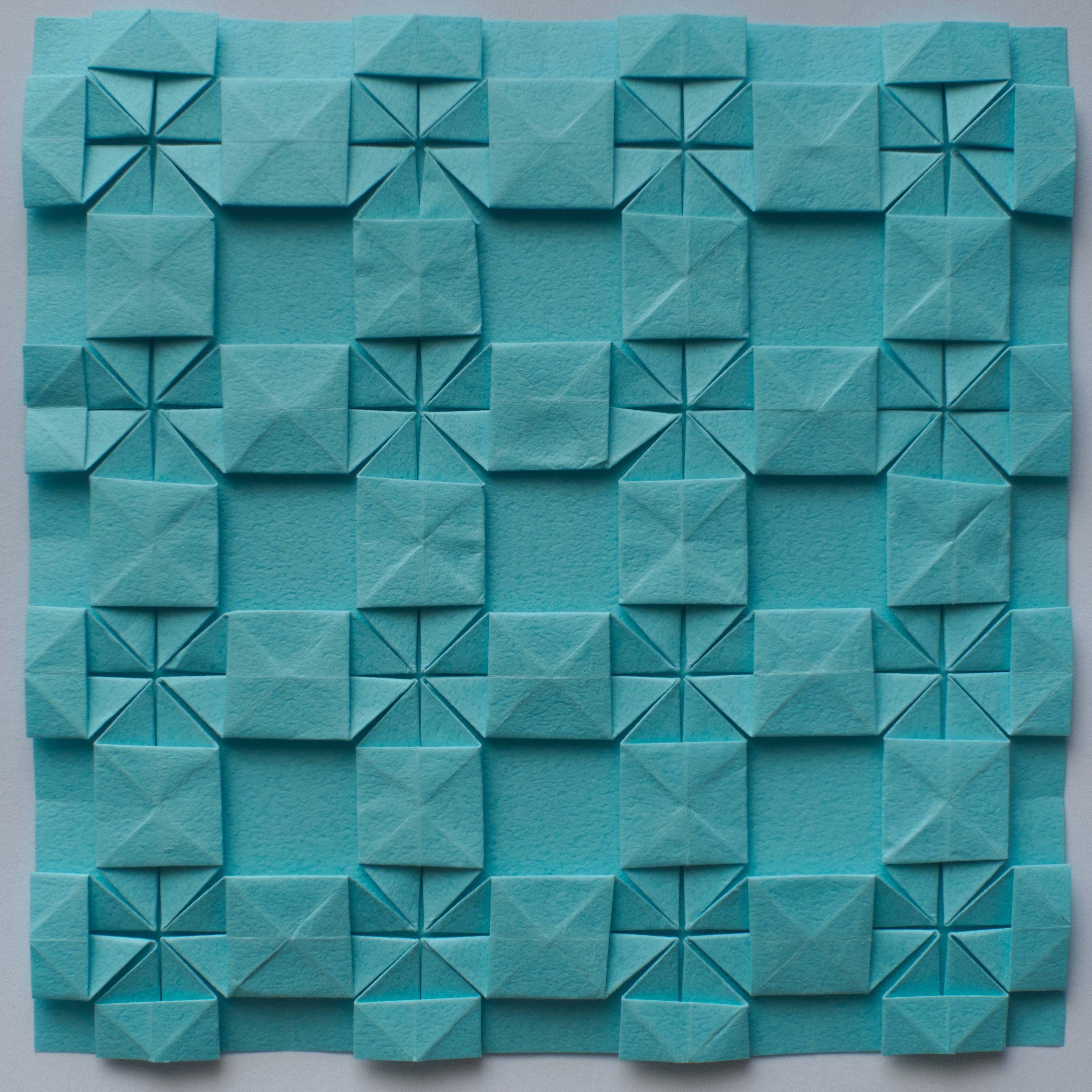 Ilan Garibi designed this model independently, and his name for it, Red Flower, is more popular. You can find instructions in his book, Origami tessellations for everyone (page 74), and in an inofficial video tutorial.