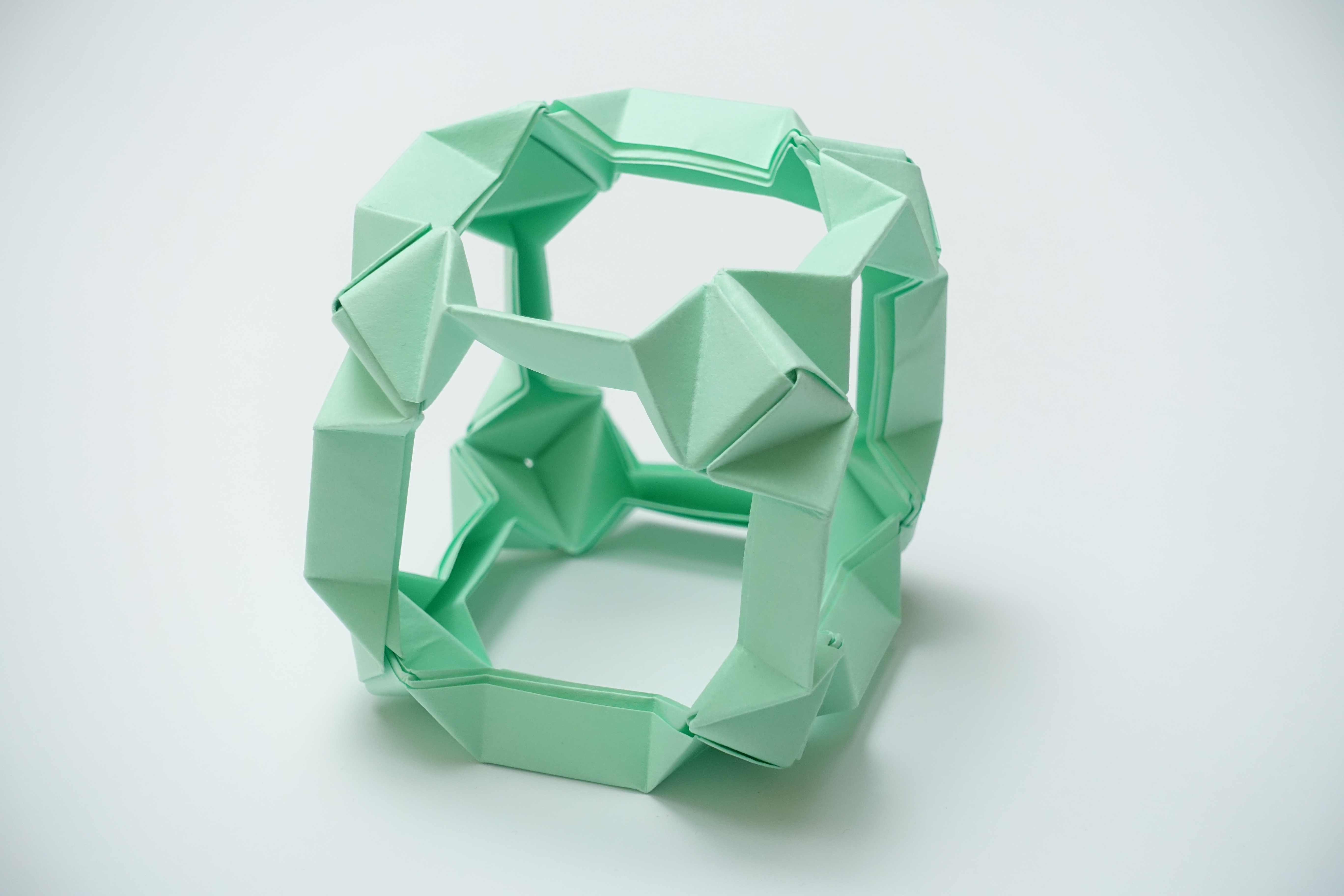 Cube (Strut Unit) Model October 5, 2025 No folding instructions for this model are listed on my page. This is the primary page for this model. Paper: copy paper (note block) Type: modular cubes and cuboids (implies: abstract modular, abstract, balls and polyhedra, cubes and cuboids, geometric, mathematical object, modular, multi-sheet) Author: Michał Kosmulski Units used: Cube (Strut Unit) (current page), by: Michał Kosmulski Unit count: 12 Colors: green In albums: Modular ① – few units Images are licensed under the Creative Commons Attribution-NonCommercial 4.0 International License Cube from Strut Unit, an older design of mine. Previous Next Comments
