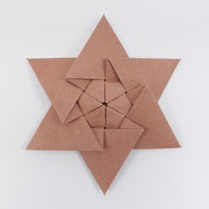 This star has a simple pattern in the center, partially hidden behind the rays — hence the name. Many variants are possible, modifying both the central element and parts of the rays (see: Unhidden Gem Star). Some variants ended up being very similar to stars I later found out to be designed by others. The whole star is actually a tessellation molecule, though I haven’t folded any larger arrangement of such molecules yet.