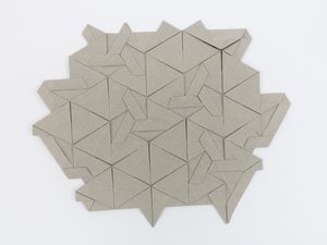 This tessellation consists of modified triangle twists. For this fold, I chose a sparse layout where not all twists have been transformed into triskelion shapes.