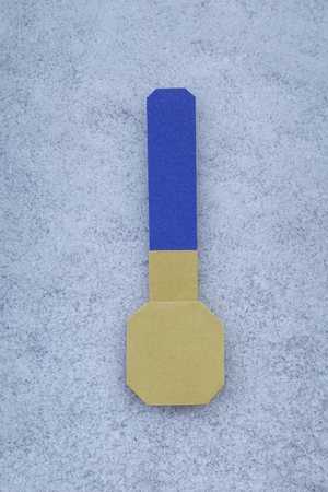 The origami model, in its generic form just a simple thermometer, can be folded from a strip of paper. The proportions can be quite arbitrary. Most folds can be made relative to specific reference points or just by eye. Together, this means you can easily fold thermometers with different proportions and showing different temperatures.