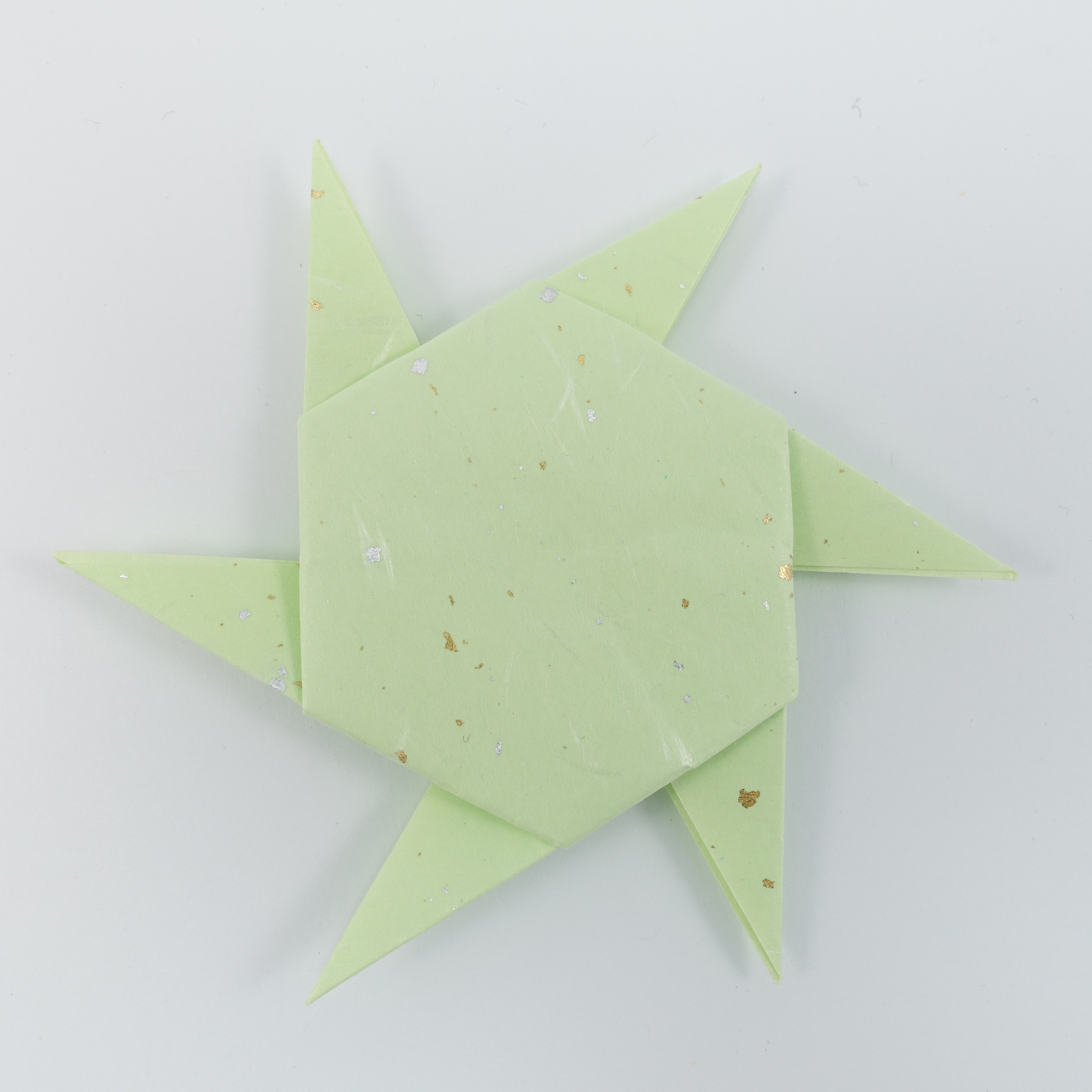 One of the basic stars by Shuzo Fujimoto that can be used as the central molecule in more advanced stars as well. This one is hard to fold because the paper in the rays has to be locked in the back where it’s difficult to reach. It also looks less attractive than most other of his stars in my opinion.